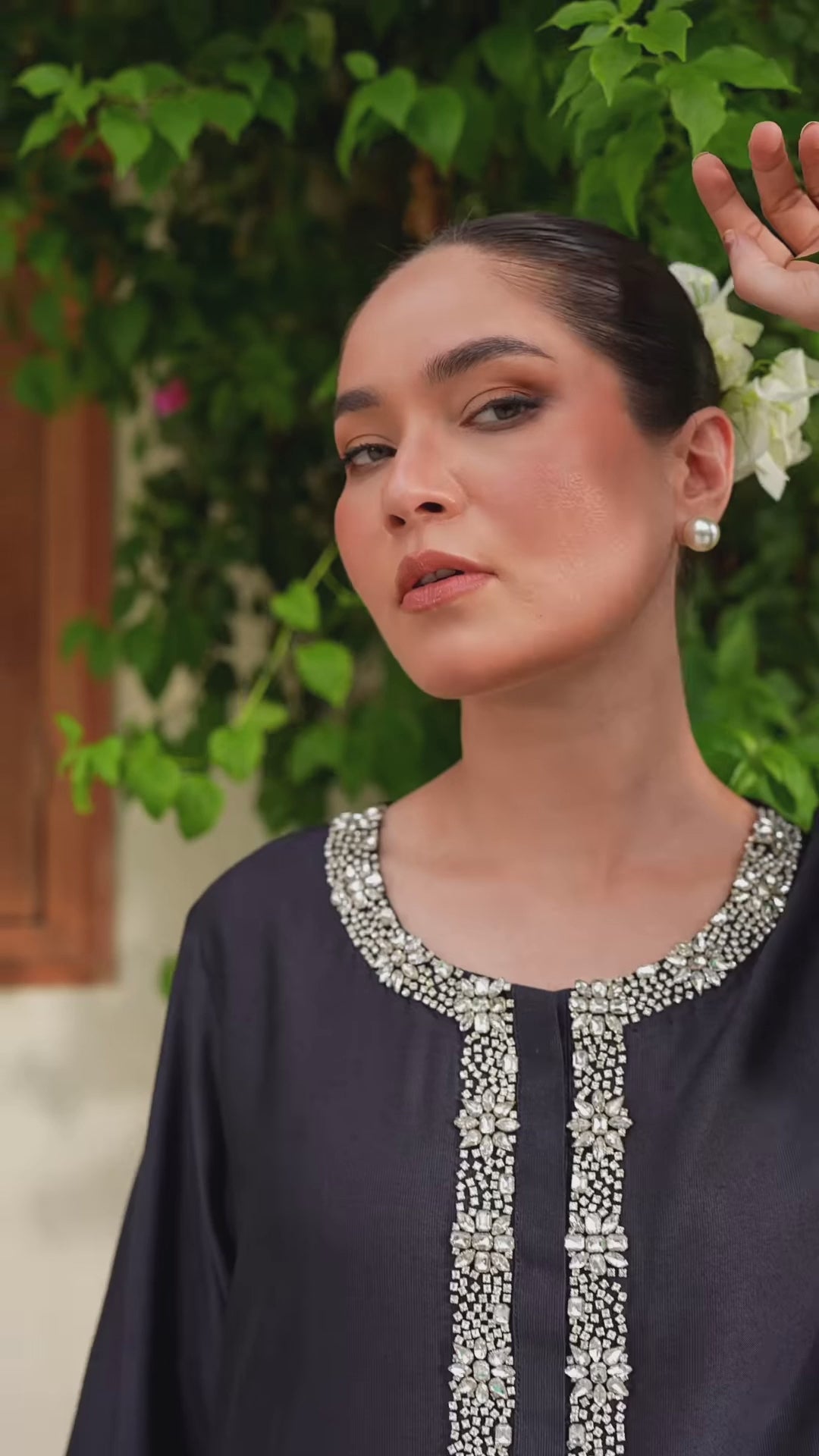 Noir Pearl Embellished Modest Co-Ord Set